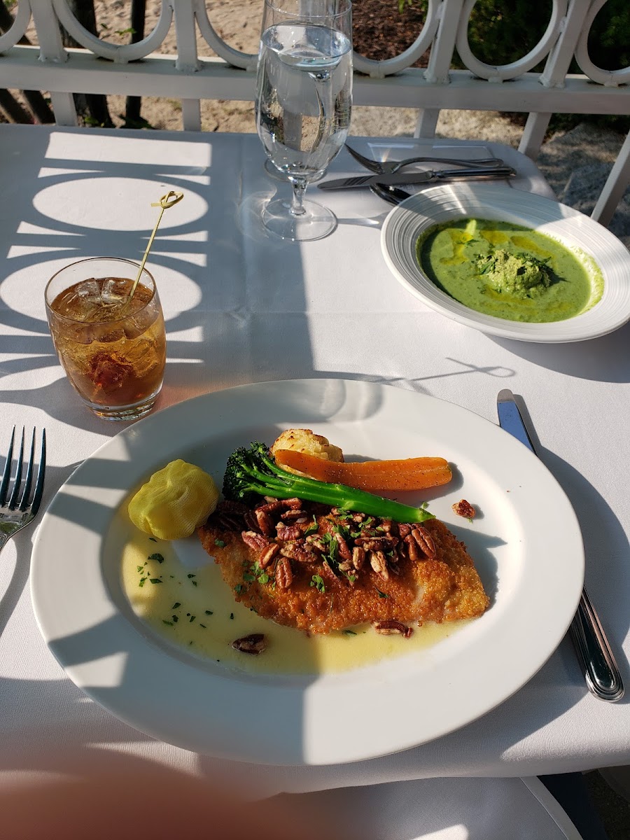 This place has fantastic food, great drinks and wine list. My husband had duck confit, I had the salmon with shrimp and risotto. Try the crab puffs and fried green tomatoes. Morgan made it happen with a lakeside view for our anniversary.