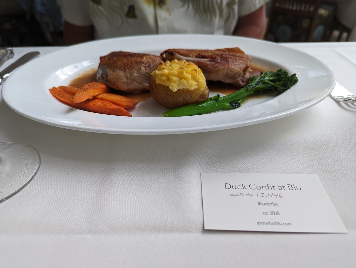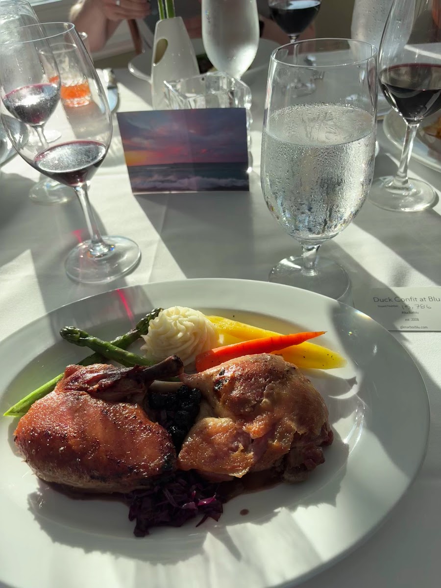 It's going to be difficult to find enough good things to say about our experience about Blu but I will try. Every aspect of the dining experience at Blu was peak quality. We can start with the ambiance. The building is beautiful and there's a nice view of the water if you get a good table. Definition of fine dining experience is the best way to describe it. The food is excellent. We had the NY strip and the duck. Both were amazing. The duck is a staple, so much so that you get a numbered card to commemorate it. The service was amazing. Not only did they try to make our birthday celebration special they also accommodated my wife's special requests. Everyone was extremely friendly and accommodating. If you're looking for one of the best fine dining experiences in the Traverse City area, look no further.