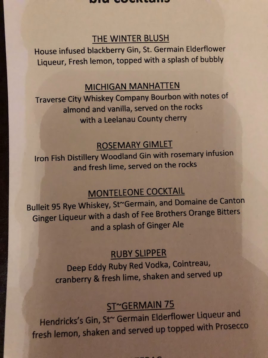 Blu - Glen Arbor Menu