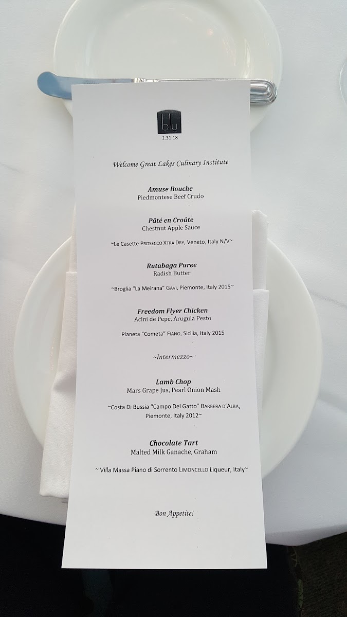 Blu offers a refined menu that reflects its New American fine dining roots, blending thoughtful craft with fresh, local ingredients. The selection ranges from carefully composed small bites, like an amuse bouche of Piedmontese beef crudo, to elegant main courses such as lamb chops served with mars grape jus and pearl onion mash. Each dish is designed to complement the restaurant’s light, airy atmosphere, making it an excellent choice for a special evening or a relaxed meal by the lakeside.